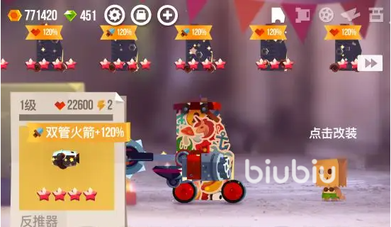 第五个火箭,是一种远距离攻击武器,一秒钟可以发射一次,造成的伤害就是它的攻击力,主要进行单向攻击;第六个激光,也是远程作战武器,输出比较强悍,攻击力比较高,短板就是攻击的间歇时间比较长,等CD的时候容易遭到袭击。