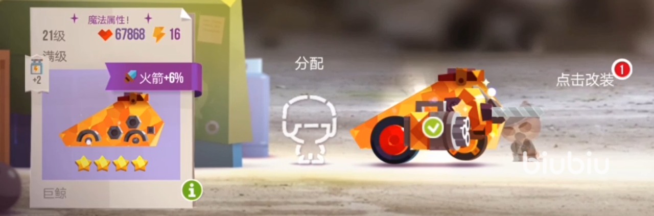 游戏之中我们可以收集到各种各样的材料,这些材料都是制作战车的物件。玩家们可以根据材料来组建只属于自己的战车。这样在和别人进行对战的时候,除了可以提高熟练度以外,在胜利的时候也会多一份趣味。