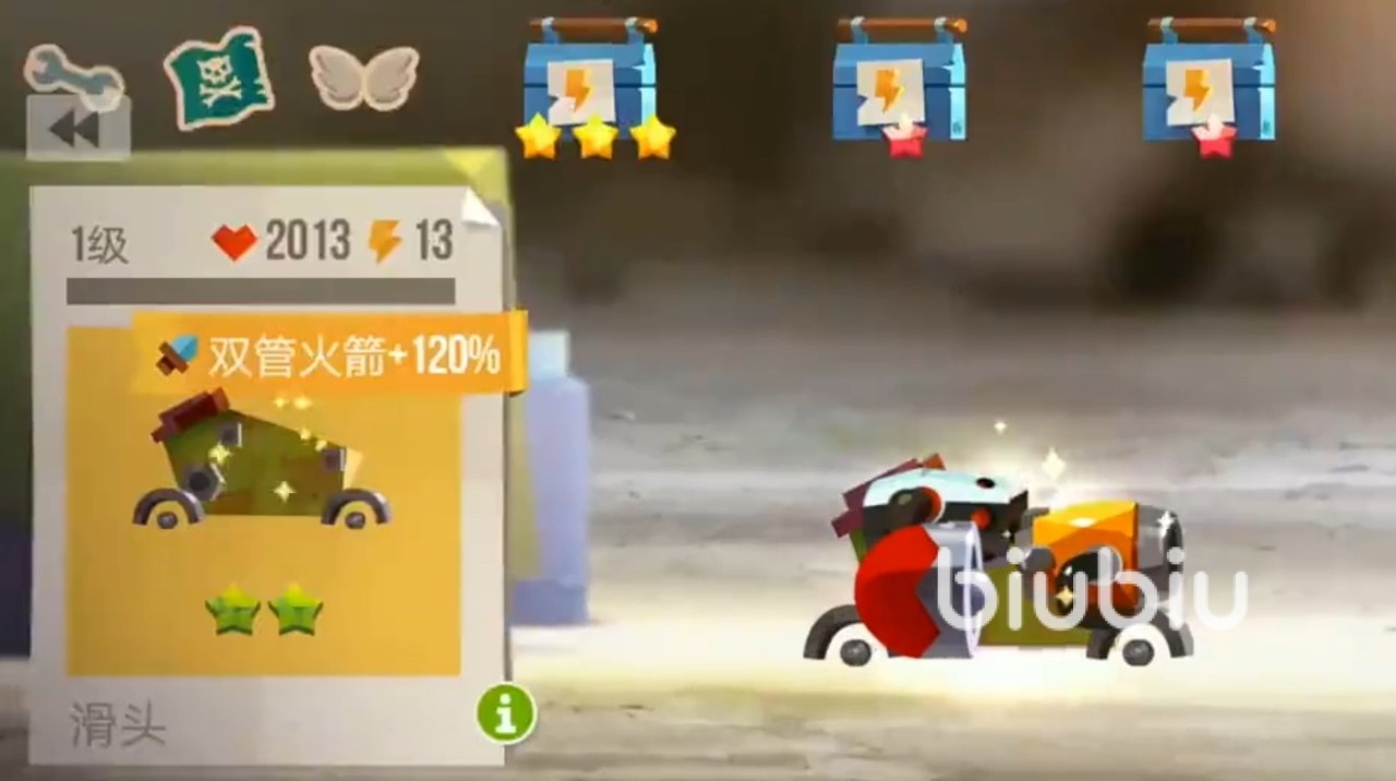 具体的操作方面,我们所选的车身身体可以选择滑头,也就是上面有两个副武器,底下一个主武器栏的那种车辆。我们可以将上面两个副武器栏装载我们的反推器引擎,下面的主武器则是可以装载我们的激光。其中激光武器伤害一定拉满,我们的反推器则是需要加三。