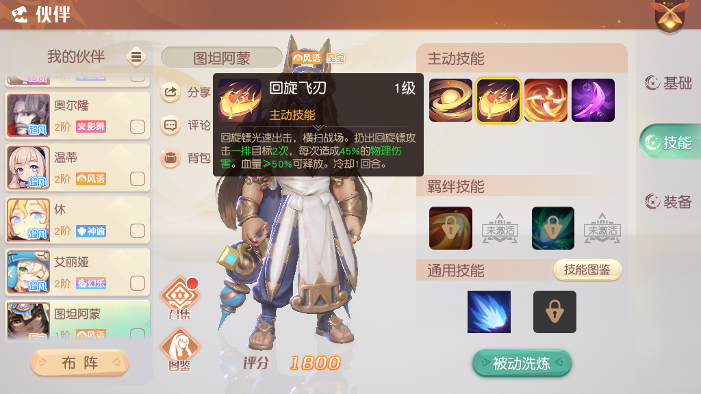 图坦阿蒙凭借超高的输出能力,使用回旋飞刃技能可以横扫敌人前排,并且攻击次数高达两次。基本上可以在第一回合的战斗当中,轻松解决掉对手的前排。玩家们依靠该阵容,去大量的完成资金任务,就可以达到家族资金增加的目的。