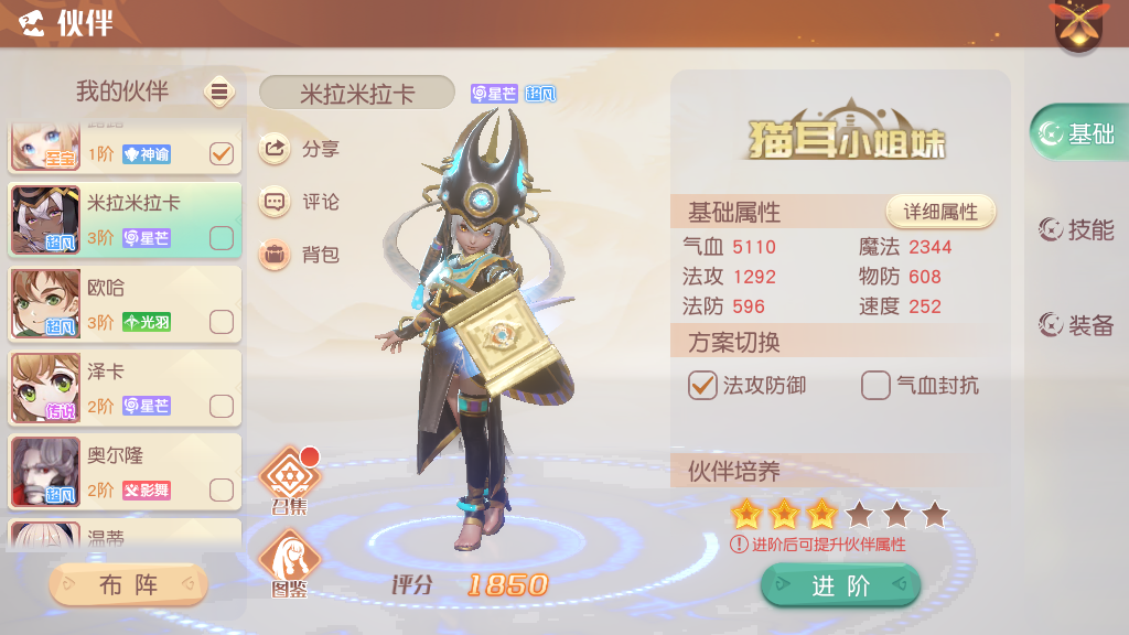 在第一回合的行动当中,使用奥尔隆优先进攻敌人的后排,让对方的后排进入到虚弱状态,无法对玩家们在造成有效伤害。而奥尔隆的樱之舞技能,可以同时对四名敌人进行标记,并且造成80%的物理伤害。随后行动的米拉米拉卡直接使用月相星陨攻击对手,该技能可以直接对单体目标造成160%的魔法伤害。技能在爆炸之后,还会辐射到两侧的敌人,再一次造成150%的法术伤害。