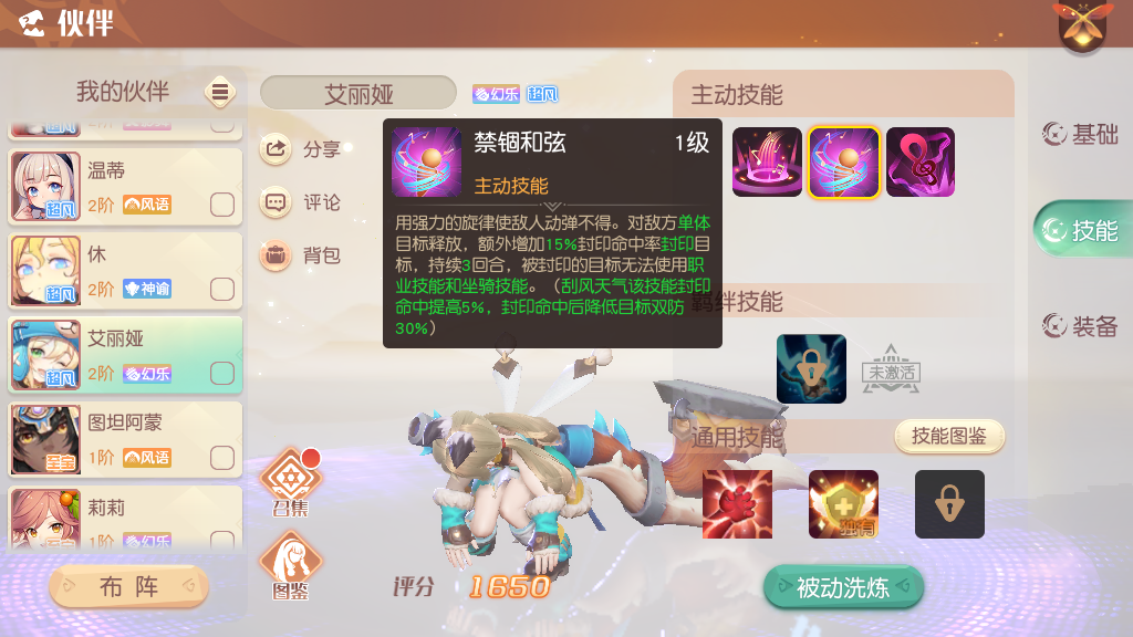 在第一回合战斗开始的时候,就需要使用好幻乐的禁锢和弦技能,该技能有15%的概率让敌人进入到紧固状态,并且效果持续三个回合。为了提高稻草人被紧固的概率,所以玩家队伍当中需要同时存在两名幻乐。只要在第一回合成功的将稻草人禁锢住。那么其他的角色就可以尽情的进行输出了。