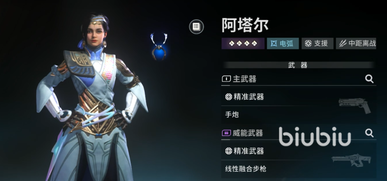 作为支援类的存在,她的“电弧飞弹”会发射一颗会弹射的飞弹,附加伤害与移速降低的平静,多次命中的话还会施加上致盲,她的“小薄出击”会立刻对指定队友以及自身施加一次治疗,她的“搭档”能在每次用特技的时候获取到6秒的欢快效果,欢快可以让队友每秒都回复生命力并得到10%加速,她的特性能在飞弹造成伤害,或者施加有效治疗时,提升自己能量,能量攒满后会给武器弹匣附加飞弹,飞弹每命中同一个目标2次就会额外施加平静,她的大招会进入爆发,发射出鸟形状的电弧能量对敌方发动攻击。