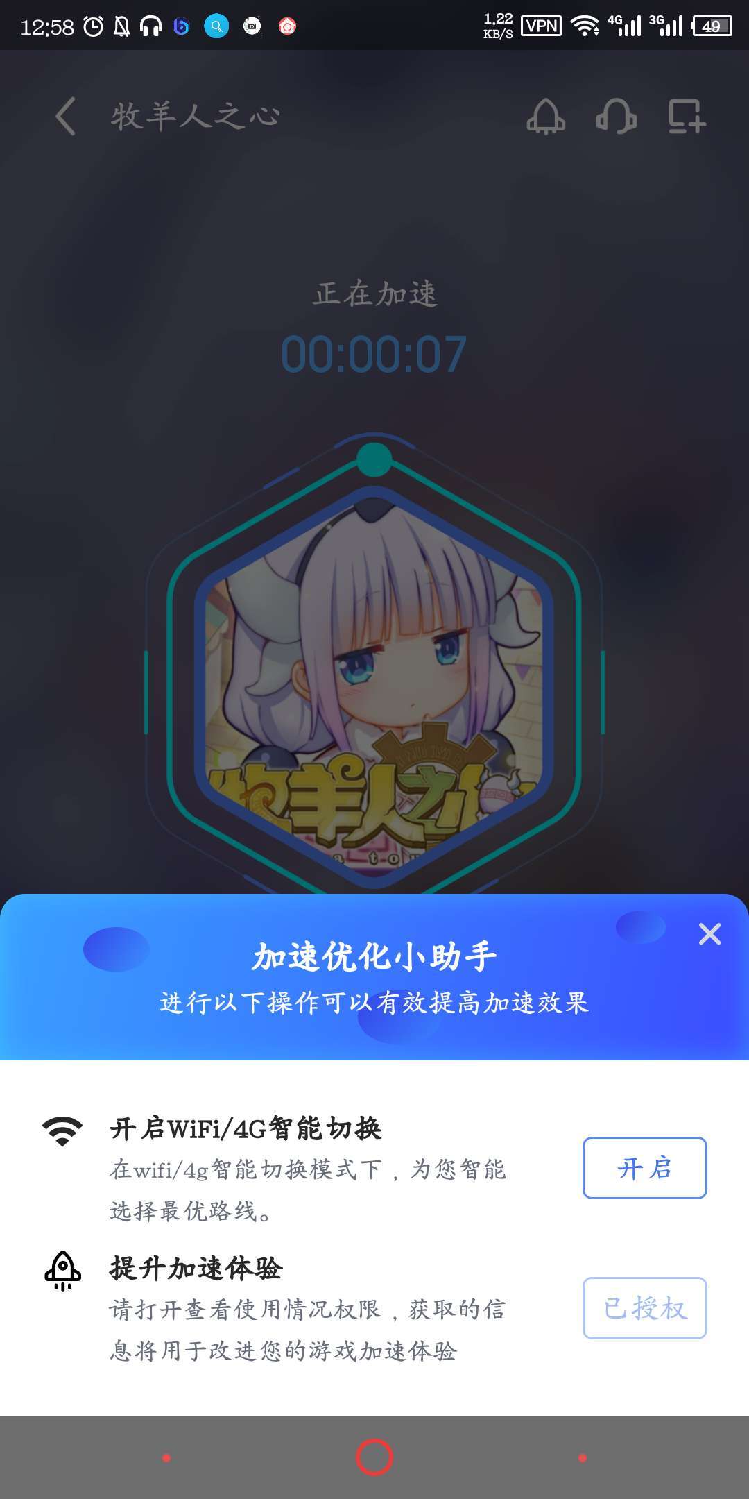 点击右上角的优化助手,能够授权APP读取加速的数据,方便biubiu更好地优化玩家的加速效果。