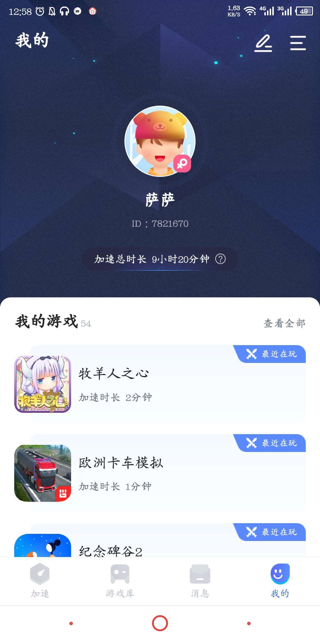 玩家可以在biubiu——我的查看所有游戏的加速时长。