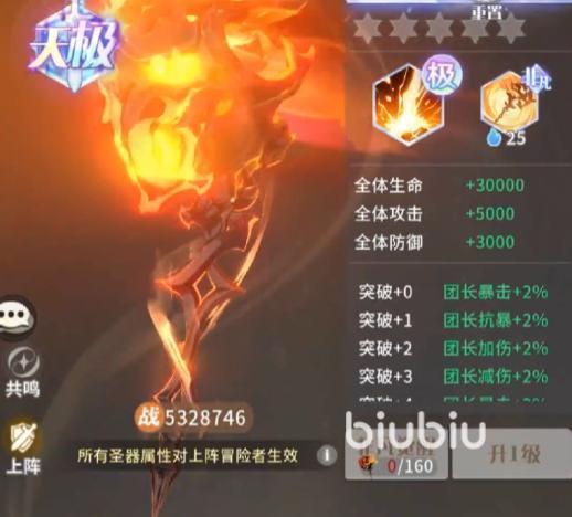 奥义技“圣权护阵”,生存技,入战自动生成护阵覆盖整个战场,提升80%的抗暴,每多一把超凡圣器额外提供相当于角色2000%的庇护值,并且可以将己方受到伤害的80%转化为由庇护值抵消。有2把圣器有30%全额伤害减免,4把则是减伤翻倍,护阵消失减伤还在,6把则是护阵会在下回合重新生成,这个机制也是非常强力,使得圣器的投入有足够的价值。