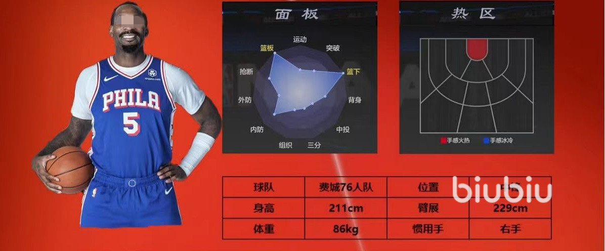 在实战的时候,小编有一个打法方面的建议,那就是进攻中适合在持球档打法里,利用自身的优势,为队友提供掩护,创造令队友投篮的机会。也可以采用挡拆后内切的方式,街到球之后直接利用在篮下超强属性优势,实现篮下终结。如果队友出现失误也没有关系,出色的篮板能力可以创造更多的二次进攻机会。