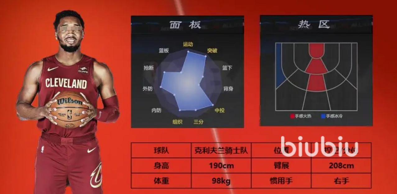 价值100万合同费的米切尔身高190cm,臂展208cm,作为控球后卫,他的身材还算不错,防守端也能起到不错的作用。他的中投能力达到155,三分球133,突破上篮162,突破灌篮150,弹跳162,是一个既能投篮又能突破的全能型球员。