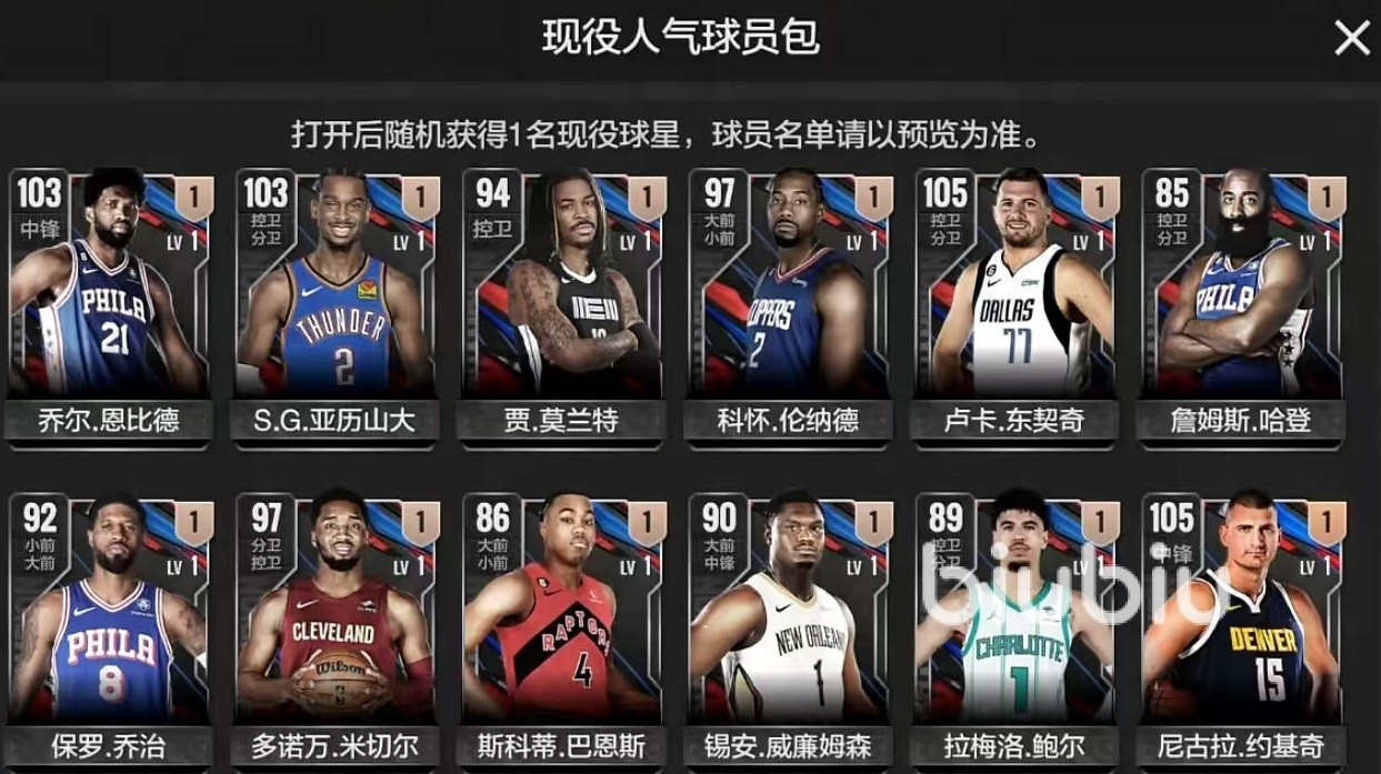 第2个卡包是现役人气球员包,既然是有人气的球员,自然在实力方面会更强一些。例如可以开出200万的单卡约基奇。或者是100万的单卡恩比德,以及拥有乔丹风格的压力山大等。这里面出现的球员都很好用,但是大家也要注意,这里面的尼古拉约基奇容易踩雷,开服之后定价达到200万,但是后续一路下跌,所以抽到之后同样快速出手。同样需要快速出手的还有詹姆斯哈登,以及锡安威廉姆斯等。