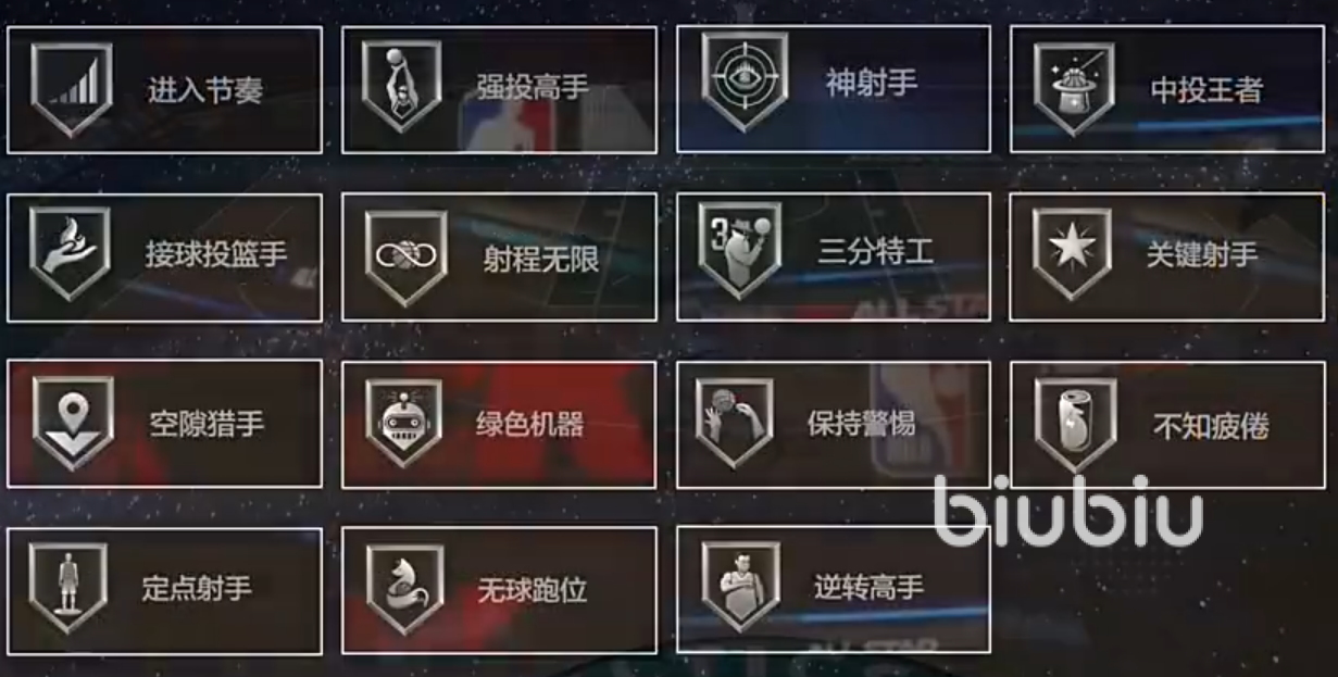 徽章方面的话,我们可以使用进入节奏。投篮的次数变多之后,那就可以逐渐的提升投篮的命中率。如此让他在作为小前锋时,不仅能够防御好,也可以及时接住队友的球并投篮,然后也可以使用三分特工,如此就能增加3分球的投射命中率。