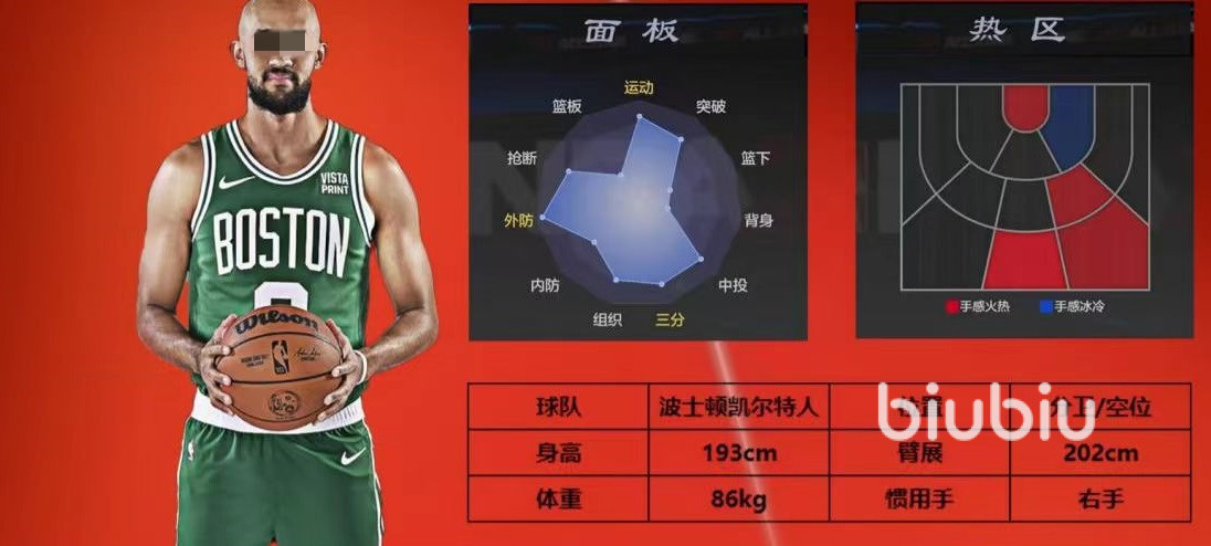 但是同样受限于自身的模型,在内线防守时可能会感觉乏力,这一点在使用的时候要注意。得分能力方面,中投131,三分133,主要区包括弧顶和45度右侧区域,这名球员并没有投射徽章,但是他在热区空投的时候还是比较舒服,所以在外线能够作为球队可靠的得分选手。另外它还具有135控球和138运球速度这两大属性,虽然并不算突出,但是偶尔进行持球挡也是可行。不过因为自身缺少组织徽章缘故,所以并不建议大家去持球挡投。