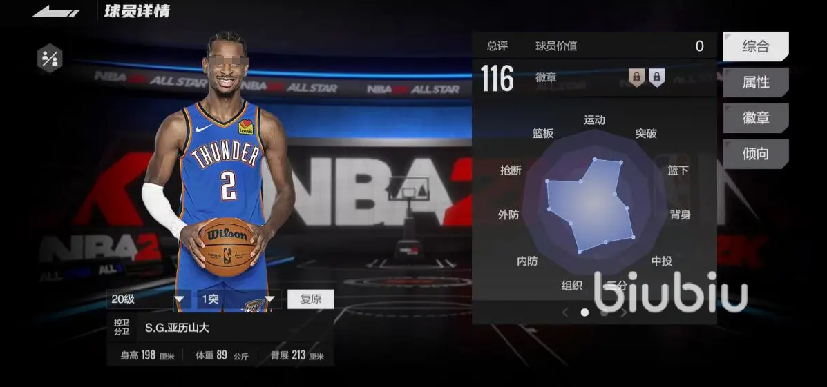 再加上他的中距离投射效果好,若是搭配一些上分节奏之类的徽章。更是可以让他轻松获得良好的投球手感,以此来增加篮球的命中率。由于他的属性较为全面且均衡,所以在街头模式中的1v1单挑中可以获得更多的优势。