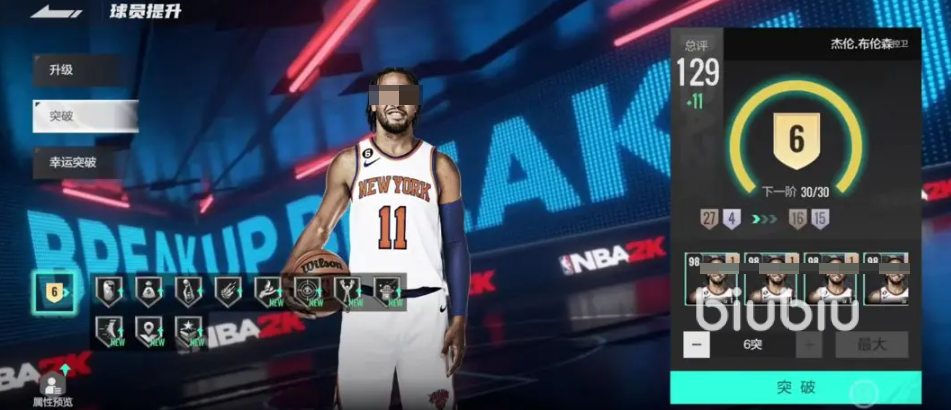 突破是球员质变的关键点,能解锁更多高阶徽章。突破分为6个等级,随突破等级提升需要的突破卡数量也越多(1/3/5/10/18/30),满突需30张同卡。虽然耗费较大,但突破后的球员在能力和战术适应性上会有巨大提升。