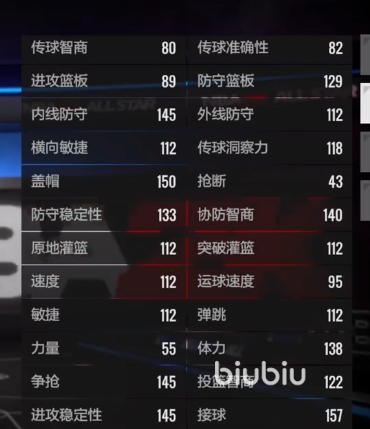 当然这个球员也是有比较明显的短板,那就是55的力量使得他在面对一些常规的力量型球手会被直接抢走球,而且敏捷速度不够快,使得他很容易被对面强势的球员卡位置,使得球无法顺利给到我方的成员,所以他在投射和运球方面是比较弱的,如果这个球员拿到球的话,需要尽快转移到我方的运球球员。