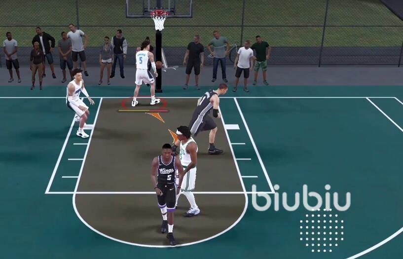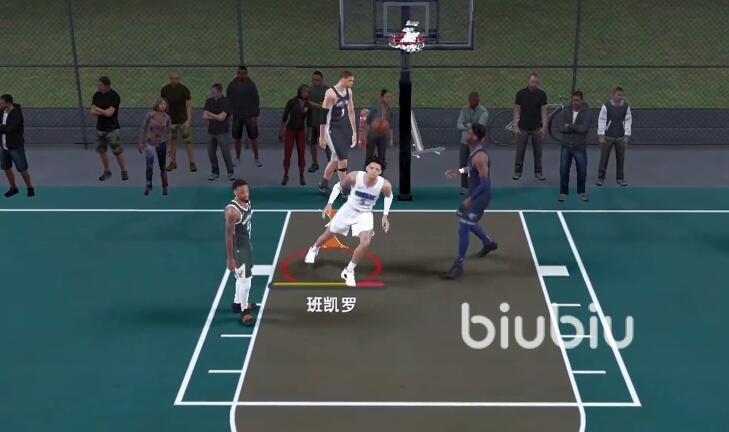 实战中,班凯罗的进攻手段十分丰富,低位单打时,可以利用力量碾压瘦弱锋线,接近篮筐后衔接沉底步或梦幻舞步完成终结,专属的翻身后仰动画包更是自带高抗干扰属性,配合无畏终结者徽章,命中率稳如老狗。团队协作方面,他还能化身战术轴心,高位手递手为射手创造机会,或是抢下篮板后长传发动快攻,防守端,班凯罗的护框策略以协防补位为主,即便对抗传统中锋也不落下风。