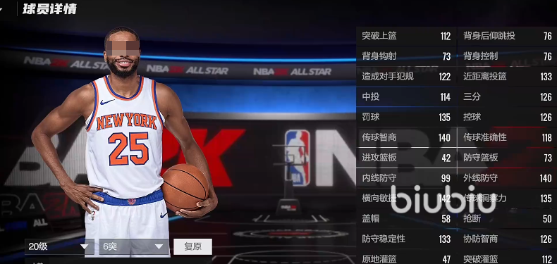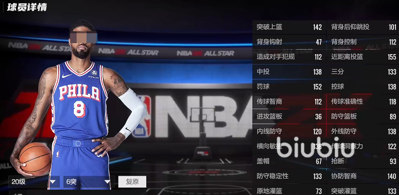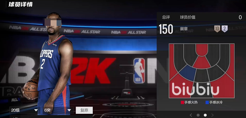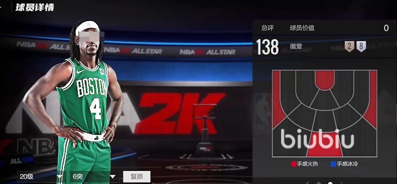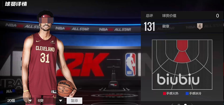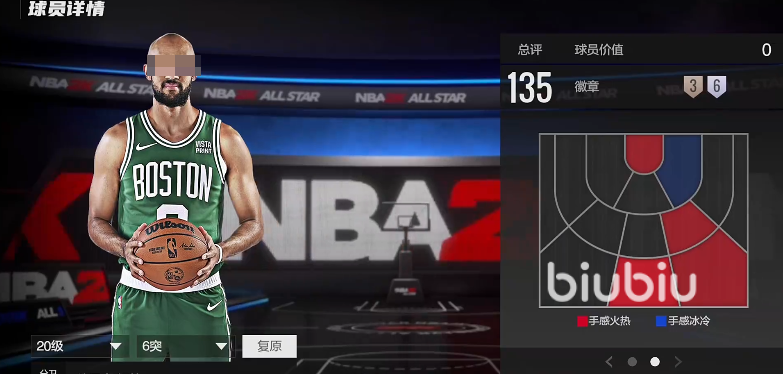 攻防兼备的全能球员,具备出色的得分能力,能够通过三分、中距离和突破多种方式终结进攻,投篮方面除了右侧45°角基本都是热区。防守能力同样出色,能够限制对方外线核心球员。拥有徽章较多,其实定位上更像是1/2号位摇摆的球员。