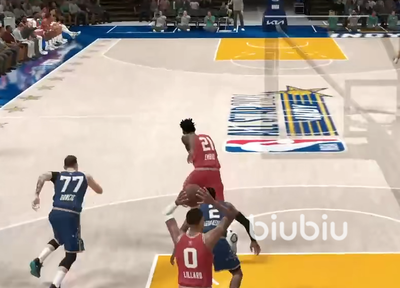 本次的游戏是属于NBA授权的正版游戏。咱们在游戏里面会遇到很多的NBA球队以及当前热门的球员。我们所需要做的就是将这些球员给组建为一个球队。然后使用这个球队去和其他玩家进行竞技。