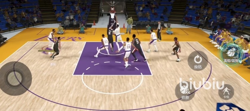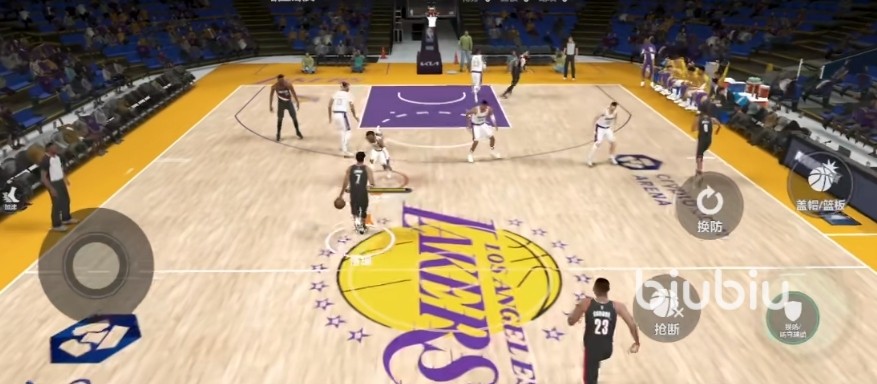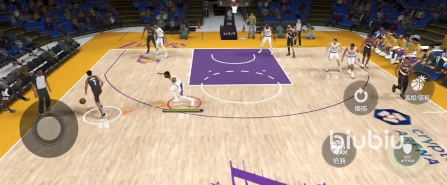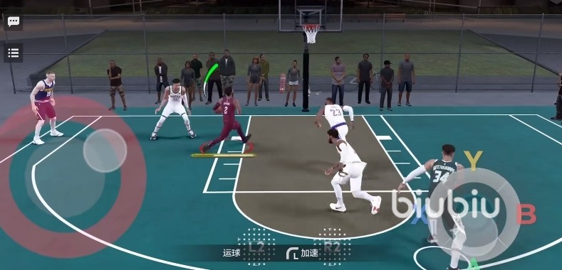 在准备阶段,可以去控制所选球员快速向篮筐方向冲刺,可先进行小幅后退调整自己的节奏,也能有效去增加对手预判难度,在冲刺过程中,先向左轻推右摇杆,制造向左突破假象,待防守者重心偏移瞬间,迅速往右回拉,同时要注意保持方向,避免回弹。