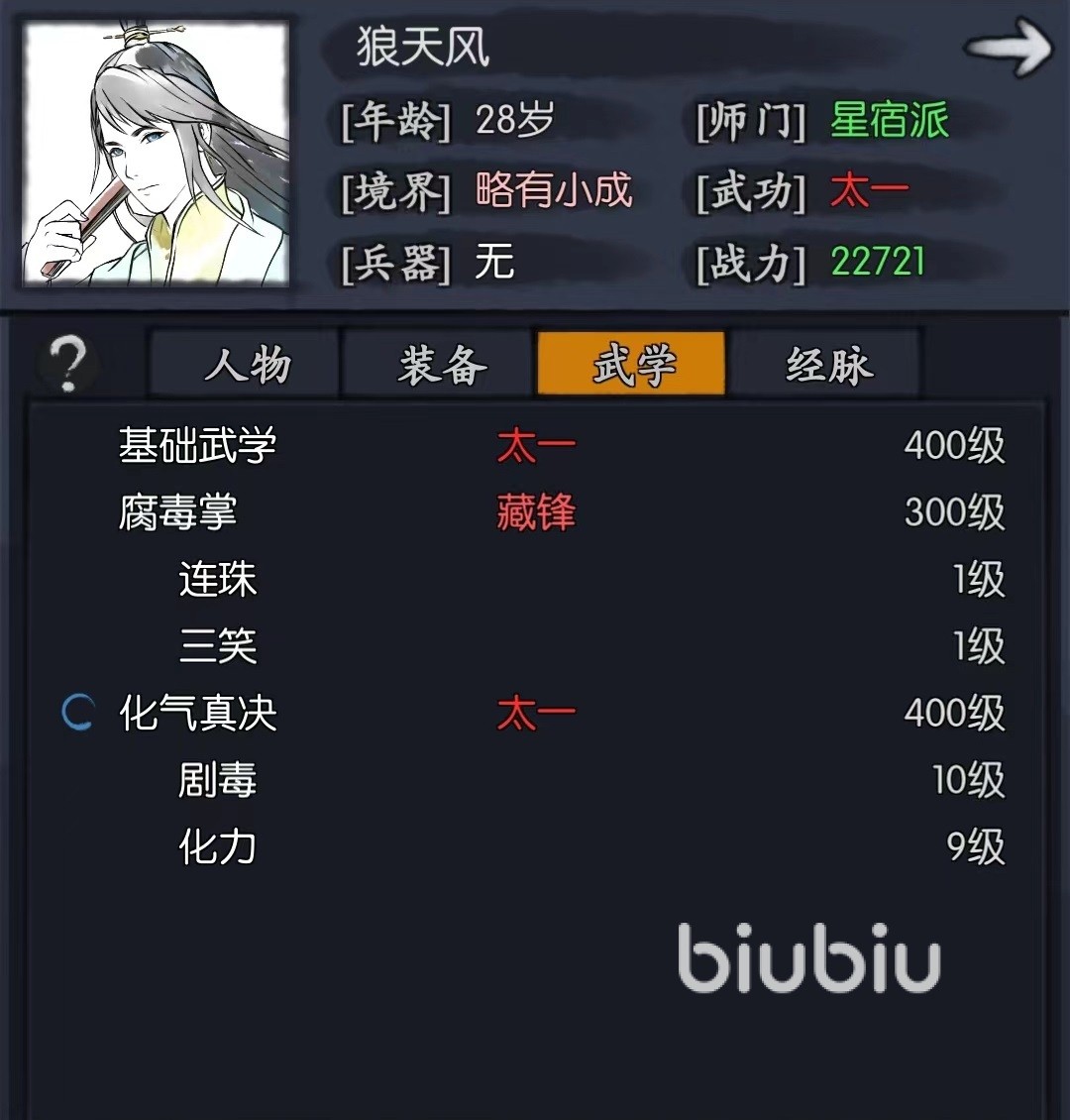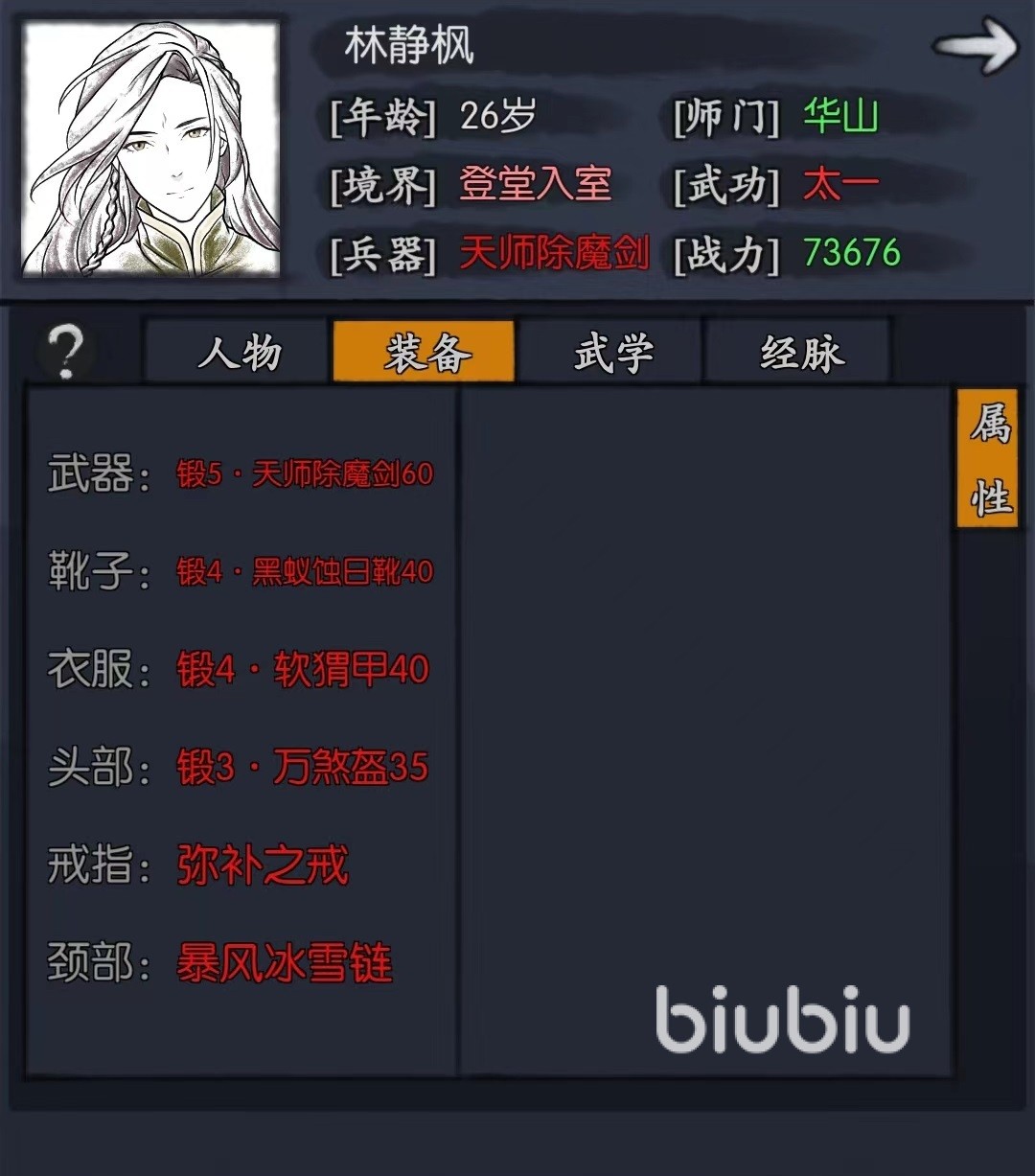 接下来推荐的是林静风,在前中后期都可以称为是神级角色,可以有几率规避所有伤害,后期在挑战高难度图的时候属于关键人物,到培养到200及时开启缺剑术就直接起飞。三个重点培养的是胡旭,也是一个堪称bug的存在,是上面所说的林静风的天敌,拥有极强的机制,只要重点学习一技能就可以限制对方核心输出,还可以利用自身反击去清除对方身上各种有益buff。如果能将属性堆到400暴击免伤以上,那么在推图时候怪物造成伤害就非常低,再配合上加血,成为前排最能扛伤害的人物。