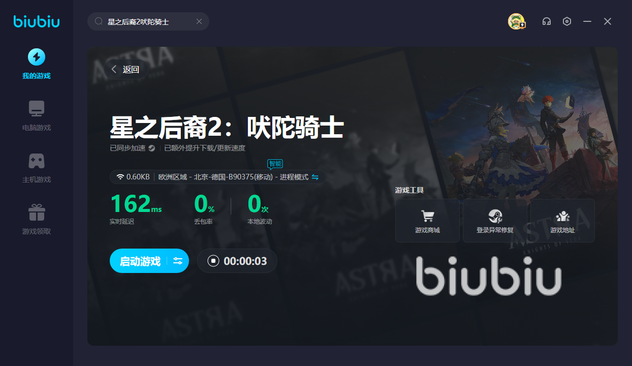 星之后裔2吠陀骑士作为一款高质量的冒险游戏,目前暂时木有国服。所以想要进入新的大陆,大家需要使用biubiu。通过畅快提速过后,才能安心开启新的征程。如果没玩过的话,新用户可获取24H的免费加速,进入冒险之地后才能体验它的出色之处;此外,新老用户都能输入【biubiu不卡顿】,便可获取三天免费加速。如果在冒险途中卡顿的话,就会导致战斗失利,并无法完成冒险任务。