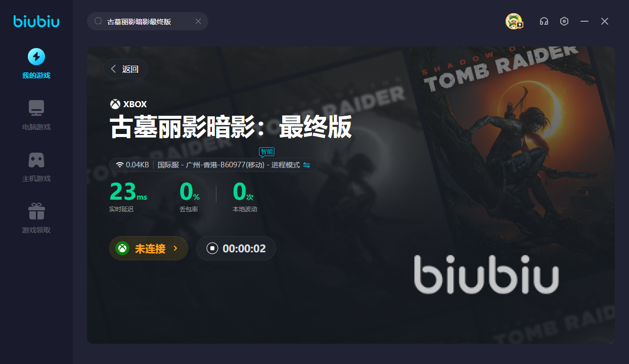 相信有很多古墓丽影的忠实粉丝,都盼望能好好体感受这部佳作。但是古墓丽影暗影最终版闪退怎么办?这时只要有了biubiu之后,就能获得更加稳定的网络。就算是玩到一半还没未完成任务,你也依然可以安心开启游戏,丝毫不用担心闪退。