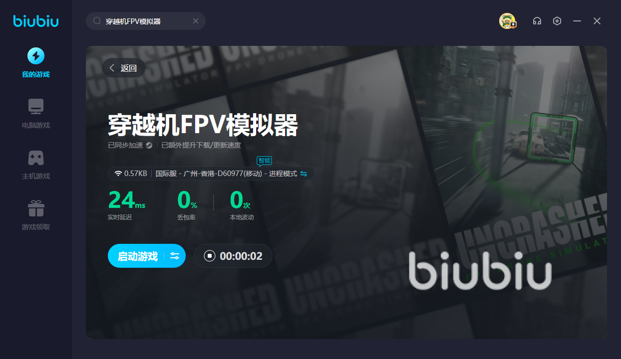 因为穿越机FPV模拟器是一款全球闻名的游戏,所以目前仍旧没有国服。这时可好好使用biubiu,通过加速后,便可乘坐最新的穿越机让你来到其他宇宙世界中。没玩过的话,新人可领取24H的免费加速,可以尝试遥控一波。另外新老用户可使用【biubiu不卡顿】,即可领取三天免费加速。如果驾驶穿越机的过程中网络太卡,那就无法继续开启冒险了。这时可用biubiu,即可拒绝卡顿,随心挑选自己心仪的无人机并开启旅途!