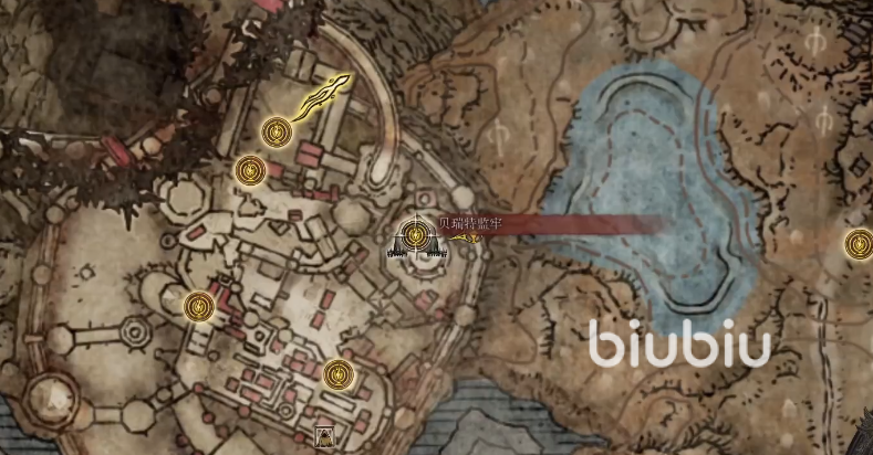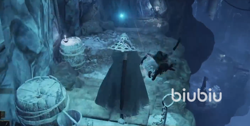 首先从红狮子弗雷亚的位置出发,往上走到湖泊的左边,就能看到一个洞口,这就是贝瑞特监牢的入口,想要前往大壶迷宫必须从这里走。进入后里面比较黑暗,建议点个星光前进,走完台阶之后会进入一个房间,这里可以摸赐福,摸完后继续前进。这里离开房间后顺着路往左走,但是不要走的太快,离开洞口后就要停顿一下,因为会有一个怪物跳出来推我们。右边就是深坑,推下去就凉了,解决掉这个怪物后搜寻下他所在的房间然后继续前进。