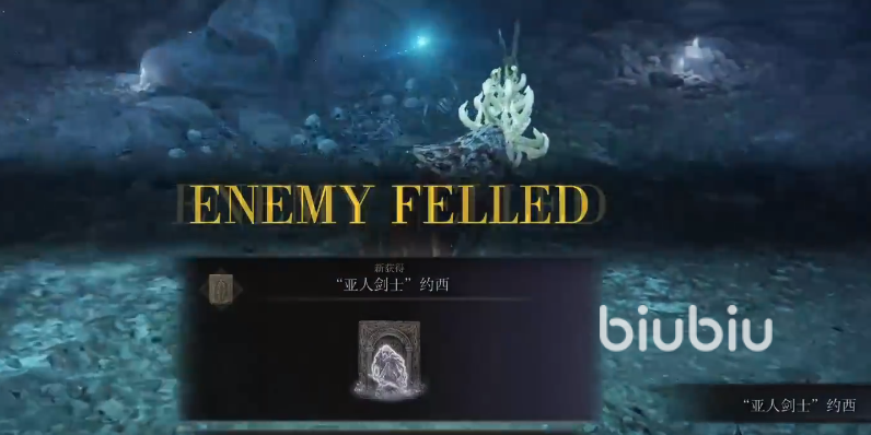 拿到头罩后回到刚才的平台,然后往下跳就是boss所在的位置了。这个boss叫做亚人剑圣,近战非常厉害。建议大家换上远程武器进行攻击,另外在进入山洞前记得把状态补满。这个boss有突进技能,但是距离不长,只要他靠近我们,我们就拉开距离,这样打上几个来回就可以消灭他了。击败他后可以拿到亚人剑士约西,到这里整个贝瑞特监牢的探索就全部完成了。