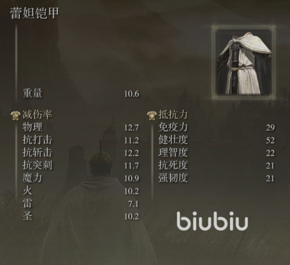 金针骑士蕾妲的防具可以说是蕾拉娜套的“青春版”,毕竟别人也不是传说BOSS,不过虽然数值略有降低,但是重量也更低了。但这个套装不是通过击杀蕾妲获得,而是在新图的恩惠教堂附近直接就能拿到,也就是开局的出生点附近,即便自己比较懒,拿完这套勉强用到通关也不是不行。