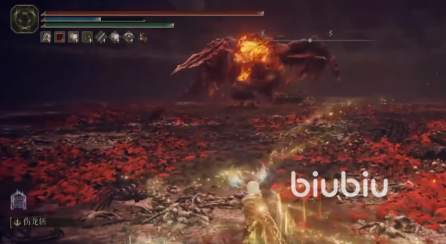 接着就是横向移动,时刻观察着怪物的动作,它会再次猛冲过来,用爪子连续划向玩家。要是被命中了,掉血也是大管大管的掉的。等这一轮攻击结束了,就是反击的好时候,召唤出来灵魂体上去砍两刀。砍完就跑远,千万不要贪刀,不然下一轮攻击就躲不掉了。