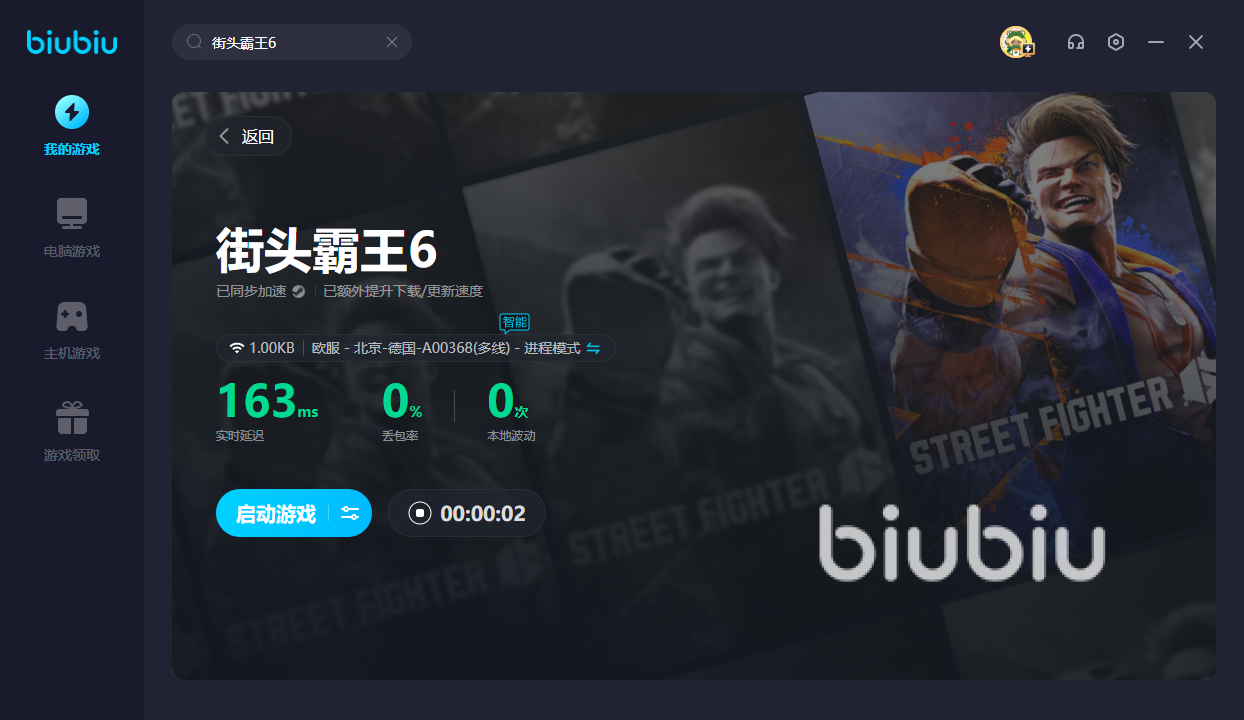 街头霸王6属于国际游戏,目前仍旧没有国服。若是打算变成实力更强悍的街霸6格斗家,就需要使用biubiu,加速过后才有能与其他人对打。若是没玩过的话,新人可领取24H的免费加速即可体验一波。另外,【【【7月5日-8月4日】】】限时免费加速,可以让你尽情享受加速魅力。若果在非活动期间打算继续加速的话,新老用户可输入【biubiu不卡顿】,便可额外兑换三天免费加速。在开始格斗赛之后卡顿的话,就会让你成为别人练习用的沙包。使用加速器后,就能防止卡顿。可以轻松解决对手。