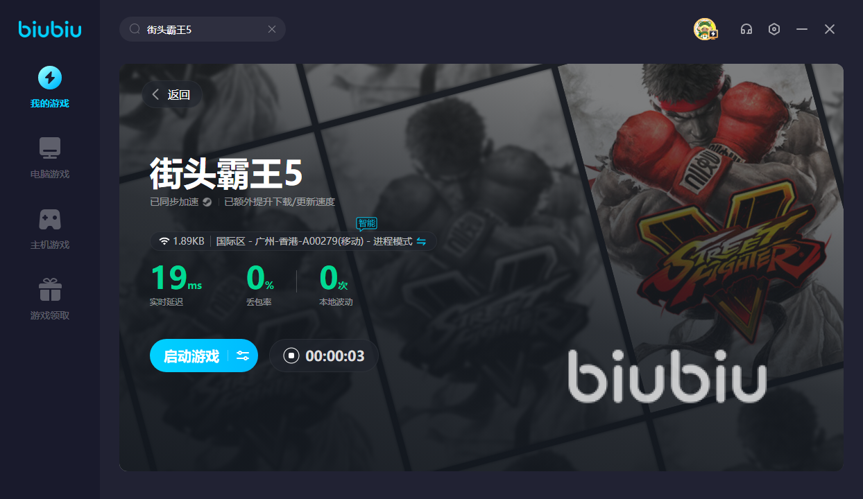 因为街霸5目前仍旧没上线国服,为了变成全世界都炙手可热的格斗家。大家需要使用biubiu,合理提速后方能继续参与国际赛事的战斗。如果没有体验过的话,新用户可领取24H的免费加速就能试玩一下。此外,【【【7月5日-8月4日】】】限时免费加速,能让你有更多的时间嗨玩。要是想在非活动期间继续嗨玩不断的话,新老用户可通过【biubiu不卡顿】,就能额外享受三天免费加速。玩街霸5时卡顿的话,那自然无法赢得胜利。使用加速器后,就能轻松远离卡顿,令你可以随心地开启一把对战!