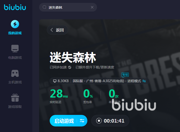 迷失森林的谜题并不是毫无逻辑的,大家进入场景以后需要根据获得的提示寻找线索,盲目翻找很可能一无所获。在解谜的过程中网络是万万不能拉胯的,否则容易导致在解谜的关键时刻掉线或者卡顿,让玩家错失线索。有了biubiu以后就没有这些掉线、卡顿的担忧了,它可以将延迟降低到毫秒之内,大家在家里就能享受到电竞赛事般的极速网速。