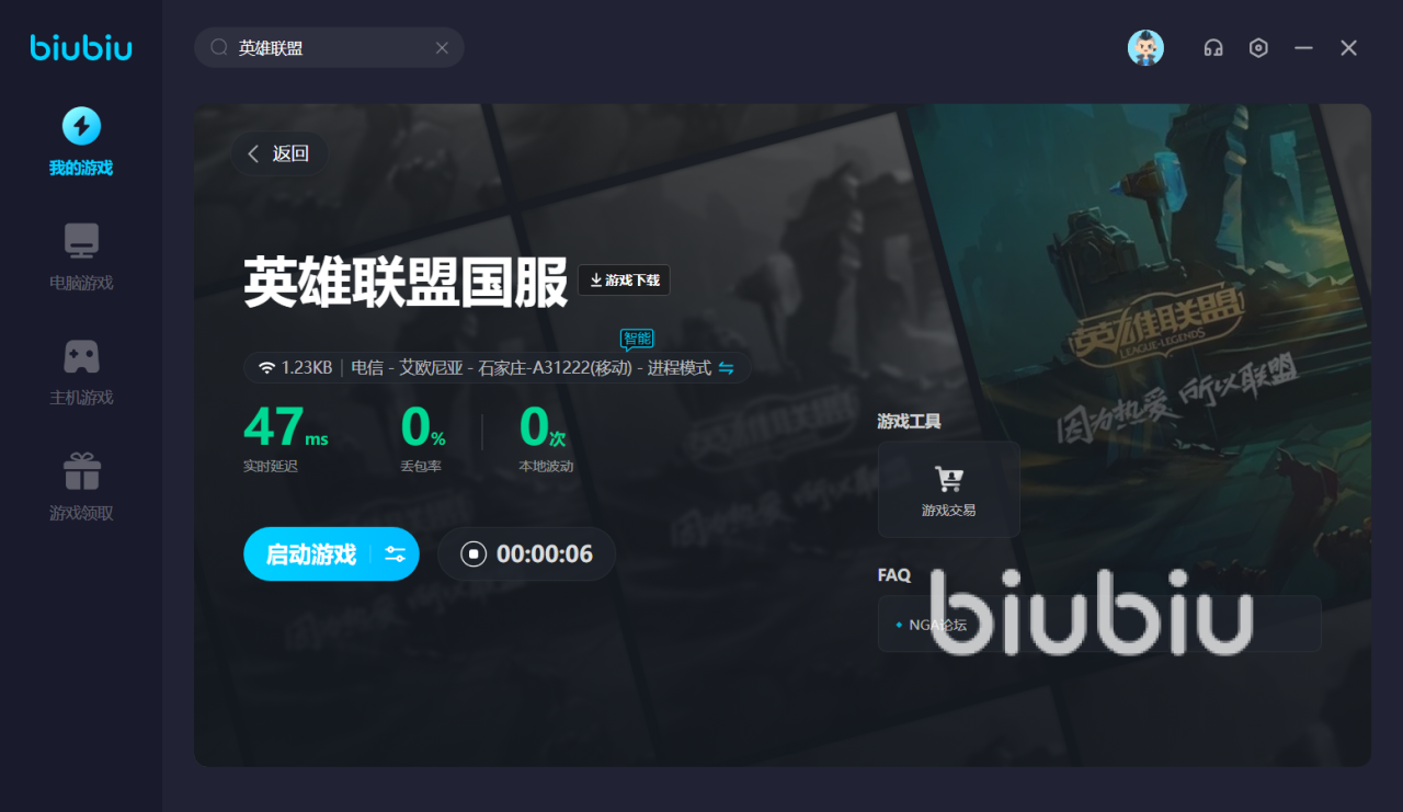 相信在众多的网络游戏中,接触最多而且了解最深的一个游戏就是英雄联盟了,这边平常也非常喜欢玩英雄联盟,而且在英雄联盟游戏过程中也会使用biubiu加速器对网络进行加速。这样在开团的时候,会减少掉帧卡顿现象的出现。