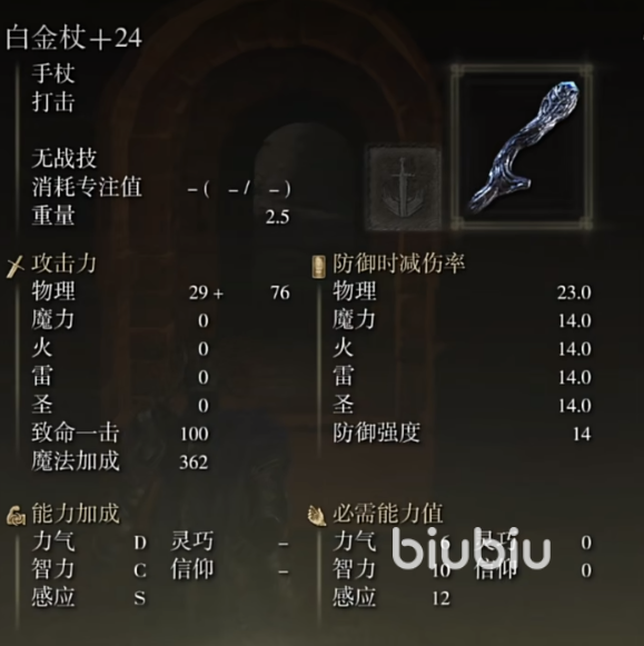 玩家可以选择法师职业,如果你不是法师的话直接回本体满月女王那里洗点。之后携带法术“拒绝的刺”以及满强的白金杖,也可以用黑王子法杖。这两把武器都有不错的面板,但最好保证自己固定属性的智力点到了70以上。