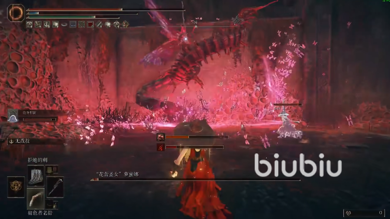 花蕾圣女作为一个传说BOSS,其外观远看像一只粉红的蝎子,体积相当巨大,但并不代表它不好对付。相反如此体型和算不上快的移动速度,反而让BOSS自己非常容易重技能,那么目前就有一种“轮椅”套路非常适合逃课。