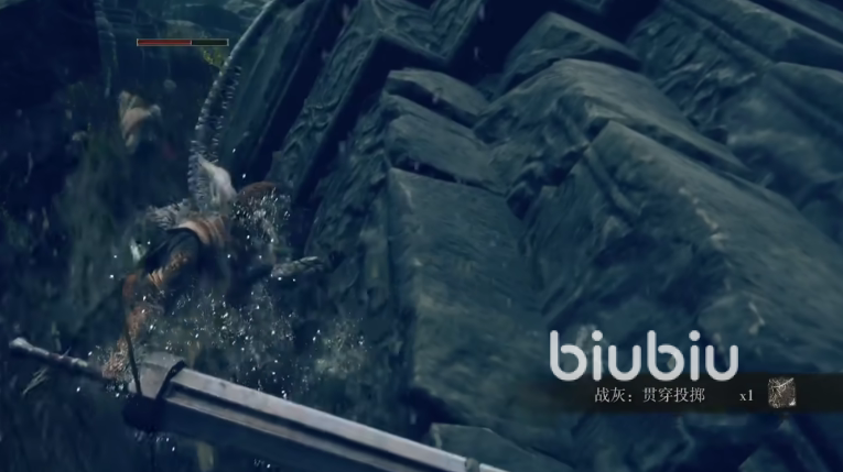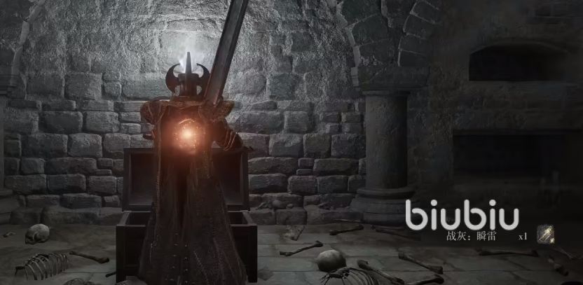 火焰穿刺:不要离开这个区域,往城堡处奔跑,来到建筑群当中,跟这里的火焰骑士进行对战,成功击败他之后就会掉落这个道具了。别看这是个小怪,但是并不好对付哦,好在场地够大,要拉扯着打。