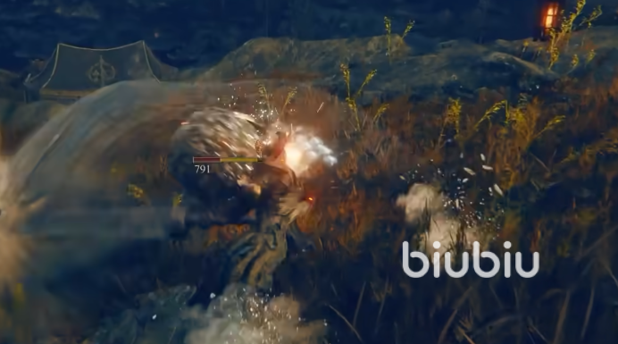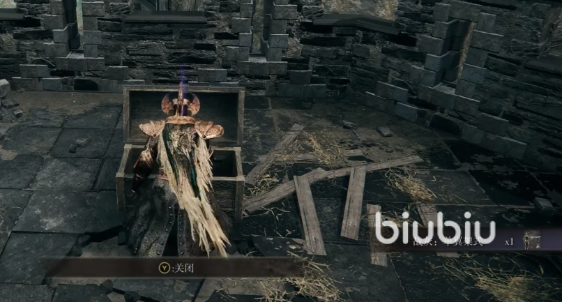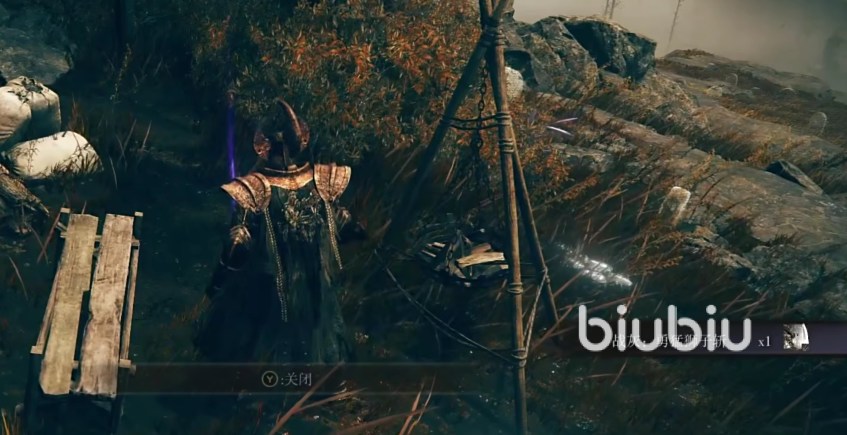 死角一击:这个需要玩家来到火吻废墟这里,找到一个像是棺椁一样的道具,这个就在平原上面的一个小亭子里面,很好看到。靠近就可以拾取一把反手剑,这个是武器附带战灰的。