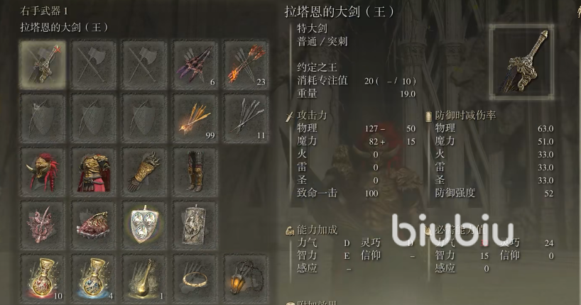拉塔恩套装:这一套是年少狮子,也就是少年拉塔恩使用的装备,武器是特大剑,重量很高,用起来手感比较顿。