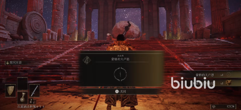 拿到追忆之后到大赐福圆桌,就能兑换武器了,即便你不想拿武器这个BOSS也是必打的,因为这是进入DLC地图幽影之地的前置条件。蒙格如果活着就不会看见蕾妲,也不会有人带你进新地图。