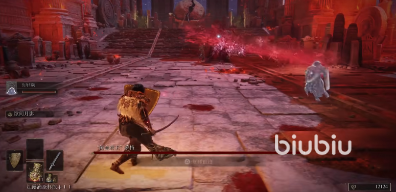 等到你的分身拉完仇恨,记得只从背后发起攻击,一旦BOSS面向你,直接拉开就可惜。因为他会在自己面朝方向的上方召唤血液,不停的洒向地面,如果你不幸被命中,会有一段时间的持续伤害。只要避开这些,那么就很好打了,因为他的普攻还是比较好躲的,有抬手前摇,你只要慢慢跟他磨血就可以,直到半血时他会进入一个短暂的虚弱状态。
