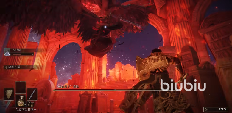 之后起身就是第二阶段,他会生出翅膀并且必然会在一开始飞向空中,对面朝的方向进行一次下落突刺,你可以往左右方向翻滚,因为判定距离都是直线,一旦中招很容易被秒,等他落地之后就开始从背后输出。等他展翅之后再次停手避开,实际上如果你不发起连续的攻击,那么仇恨值往往都在仿生泪滴身上,只需慢慢避开他的飞天技能,等落地从背后偷伤害,就能将其击杀。
