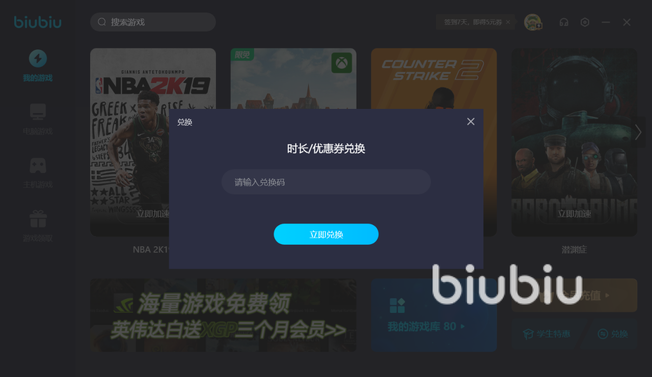 有小伙伴在完成副本任务或者是杀怪兽的时候都遇到了掉线和闪退等现象的出现,而且也会遭到敌人的侵袭,如果此时不去解决网络的问题那就非常烦躁了。biubiu加速器优化和加速网络,直接点击上面的下载按钮即可下载安装,同时平台也为第一次使用加速器的用户提供了24小时免费时长的获取活动;还有就是平台当中新老用户均可以参加的兑换码活动,输入兑换码【biubiu不卡顿】就可以获得三天免费时长体验了,这样算下来新用户都有四天免费时长可以体验,人性化的操作不会浪费大家的免费时长。