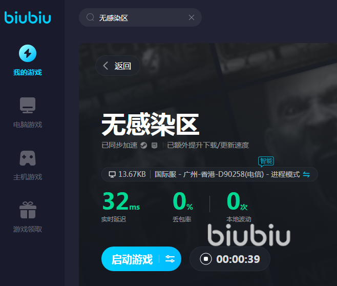 在玩无感染区的时候,游戏内时间是有白天黑夜交替的,白天是安全时间,而一到晚上丧尸就会进行大规模的进攻。作为生存挑战游戏,每一分钟都是珍贵的紧张的,尤其是抵抗丧尸的时候,操作具有连续性,如果游戏突然闪退后果不堪设想。想要避免这样的情况,大家可以用biubiu加速器,它专业提升游戏网速,有效缓解网络延迟,还拥有针对游戏登录异常修复的工具,给用户打造一个流畅又优质的游戏网络。