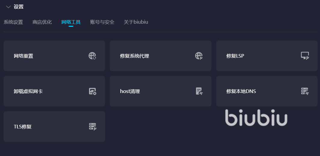 有时候就算网速已经很好了,但是电脑网卡被限速,那么也会导致游戏闪退。遇上这样的情况,大家可以在biubiu里找到工具箱来修复这些故障。无论是游戏被限速还是加速异常,都可以使用它们,不同的工具对应解决不同的问题,修复好以后大家只要重新加速,就会发现电脑运行流畅了,游戏玩起来也特别痛快。