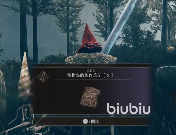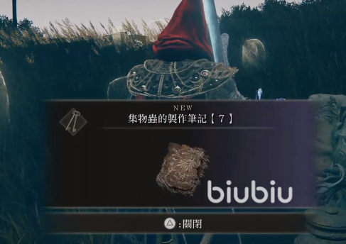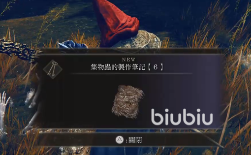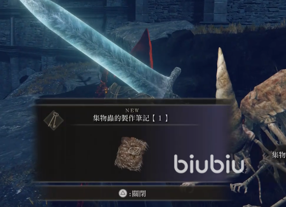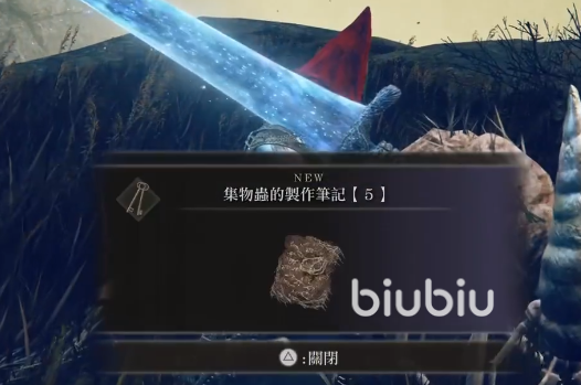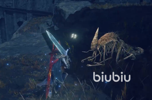 制作笔记【1】:大家来到穆斯废墟赐福点后,从西南方向往废墟靠近。来到靠近城墙的悬崖位置后,就能看到集物虫了,和它交谈即可获得第一本笔记。