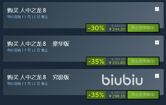 《人中之龙8》无疑是本世代最受欢迎的回合制JRPG之一,强大的动态指令战斗和演出,让玩家不再会因为回合制而感到无聊。系列史上最强大的角色阵容,两条故事线并进,让剧情更具电影化的展开,此外丰富的额外玩法也能在探索途中乐趣无限。化身桐生一马和春日一番两大主角,开启一段传奇故事吧。目前该作全版本折扣,基础版244.3元,而豪华版252.85元,究极版298.35元。