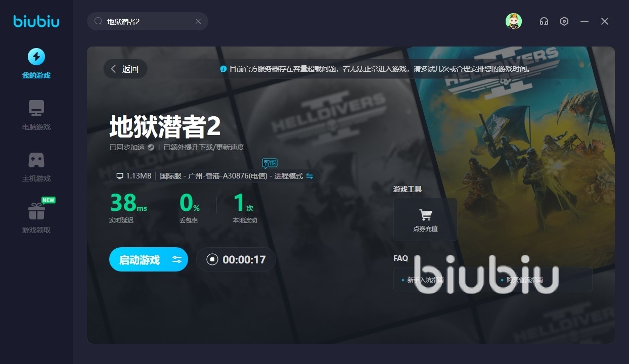 好了,以上内容就是地狱潜者2延迟的全部介绍了,小编已经在上文为大家做出了详细的说明,如果朋友们想要进入其中来体验游戏,但是又担心自己的网络不给力,那么去使用biubiu来进行优化还是非常关键的,各位对于此方面有想法的话,就抓紧行动起来吧。