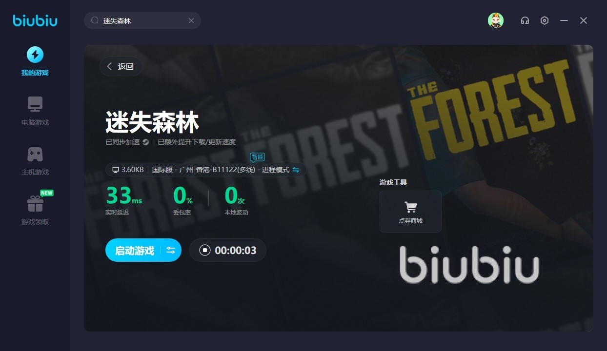 之所以会强力推荐biubiu,也是因为该软件的福利十分的给力,现在作为平台的新用户,大家在登录后是能够得到24h加速的,并且针对迷失森林,小编发现目前平台还开放了限免的加速服务,重点就在于【【【7月5日-8月4日】】】会开启限时免费加速活动,到时大家可一定不能错过了,当然了,在活动结束后,也可考虑去输入【biubiu不卡顿】来兑换72h的加速机会,新老用户皆可去领取哦。