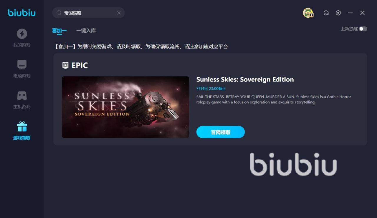 很多游戏商店为了吸引用户使用,会免费赠送一些游戏大作,很多玩家由于无法及时获取到相关的资讯,所以并不知道怎么去领,为此,软件内专门开辟了一个游戏领取版块,大家在这里只需一键领到免费游戏。